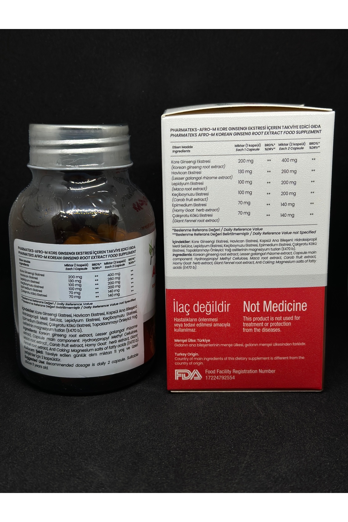 -Afro-M Kore Ginsengi Ekstresi İçeren Takviye Edici Gıda 60 Kapsül